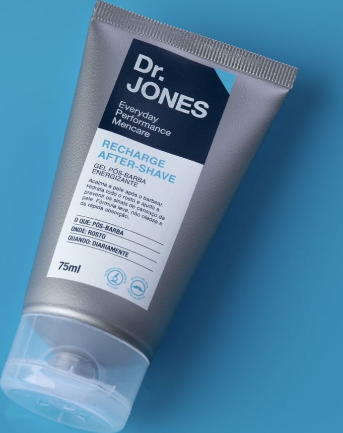 Prepare-se para uma solução de alta performance com fragrância suave e agradável, sem resquícios e sem toque pegajoso. O Recharge After-Shave, da Dr. JONES tem textura em gel com fórmula leve, não oleosa e de rápida absorção.