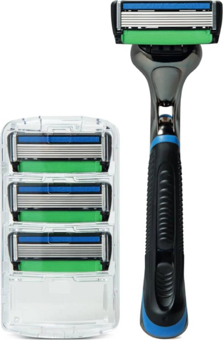 Kit com cabo de aparelho de barbear e recargas. Dr. Jones The Razor 6 Plus vai mudar seu jeito de fazer a barba, com segurança, menos passadas e menos irritação na pele.