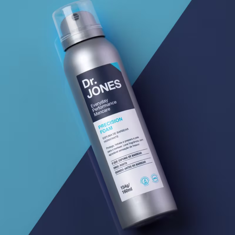 Dr. Jones Precision Foam - Espuma de Barbear 160ml: protege e hidrata a pele, controlando o excesso de oleosidade e condicionando os fios.